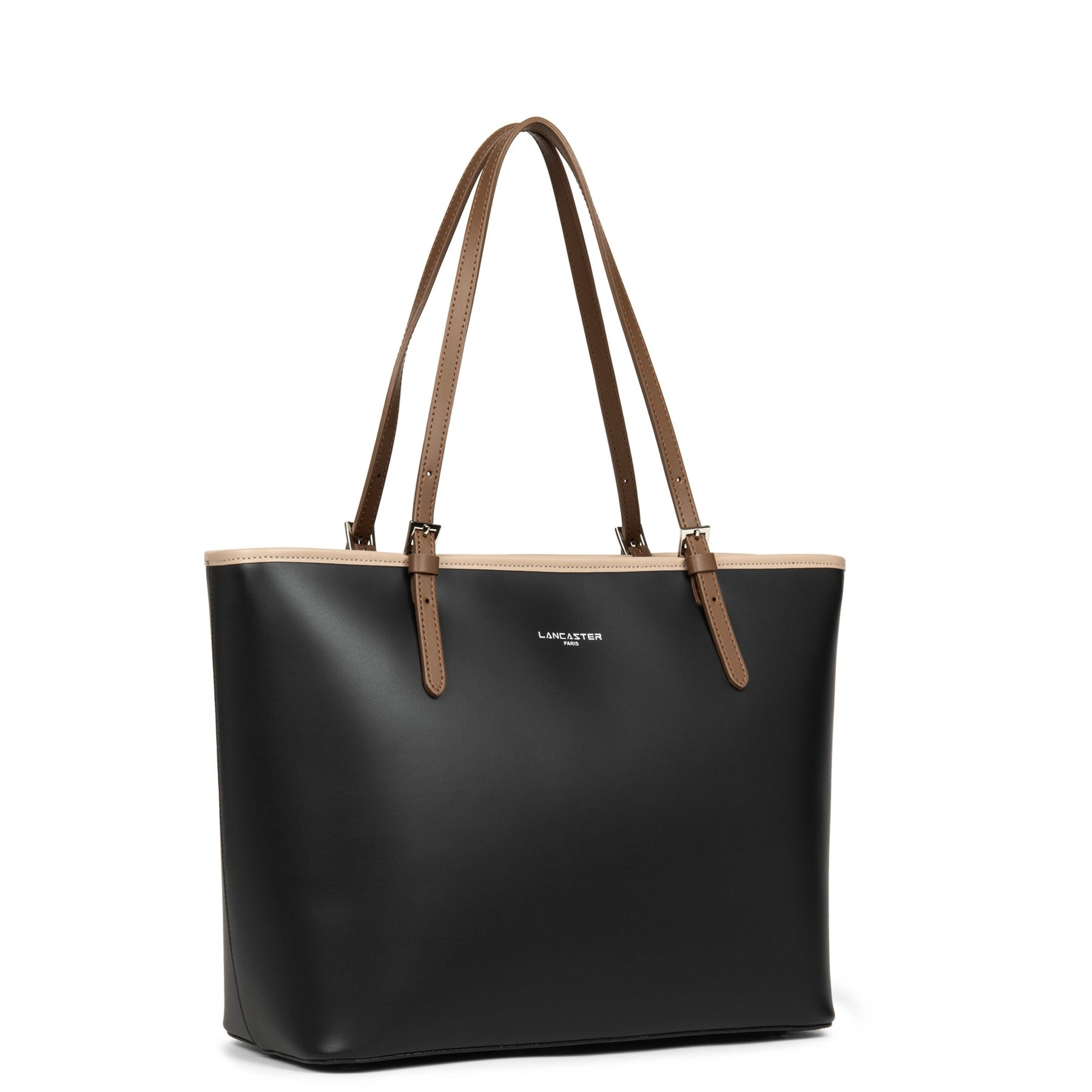 Lancaster Sac cabas épaule Zippée L Smooth 437-08 Noir - Nude - Vison