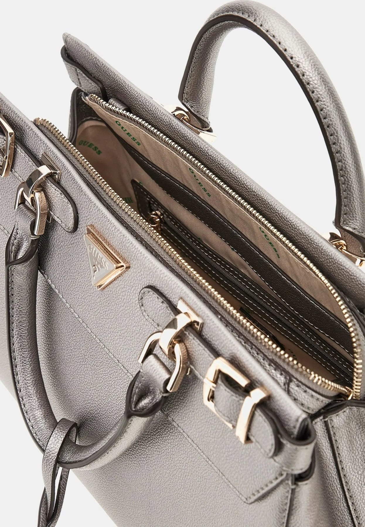 This Guess shoulder bag from the Eco Ali Luxury Satch line combines contemporary style with urban practicality. Its pewter silver shade adds a modern and sophisticated touch to your everyday outfits.