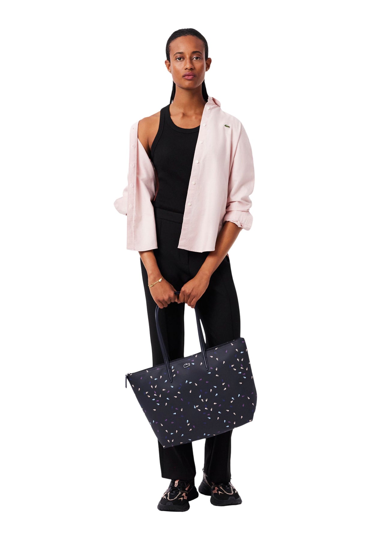 Présentant une touche élégante et unique, ce grand sac cabas réinvente l’esprit Lacoste avec une allure contemporaine et joyeuse. Ses petits crocodiles colorés apportent un contraste délicat au bleu marine, assurant une protection stylée pour vos indispensables quotidiens.