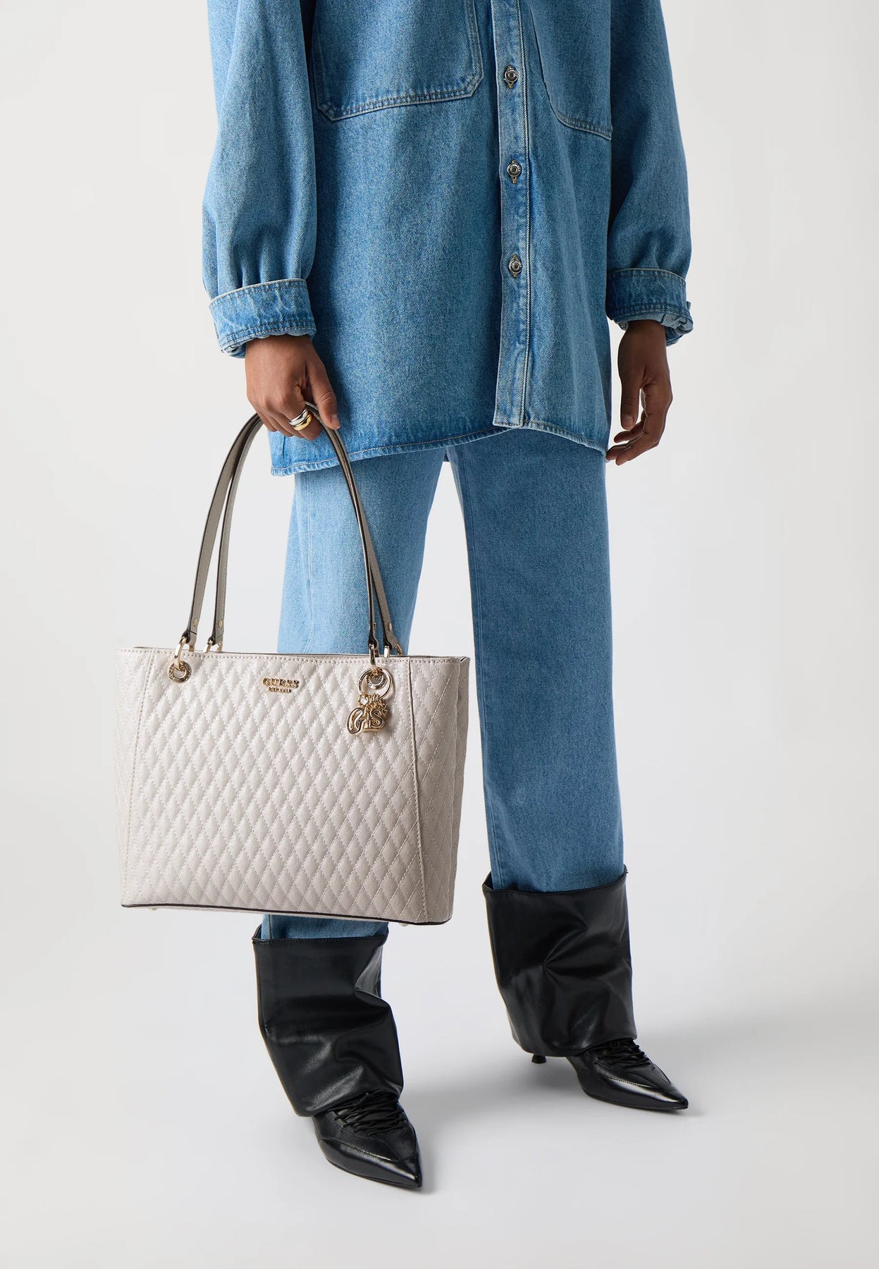The Guess Betula Satchel shoulder bag in taupe color embodies contemporary urban elegance. Its sophisticated taupe shade perfectly matches modern looks, offering a refined alternative to classic tones.