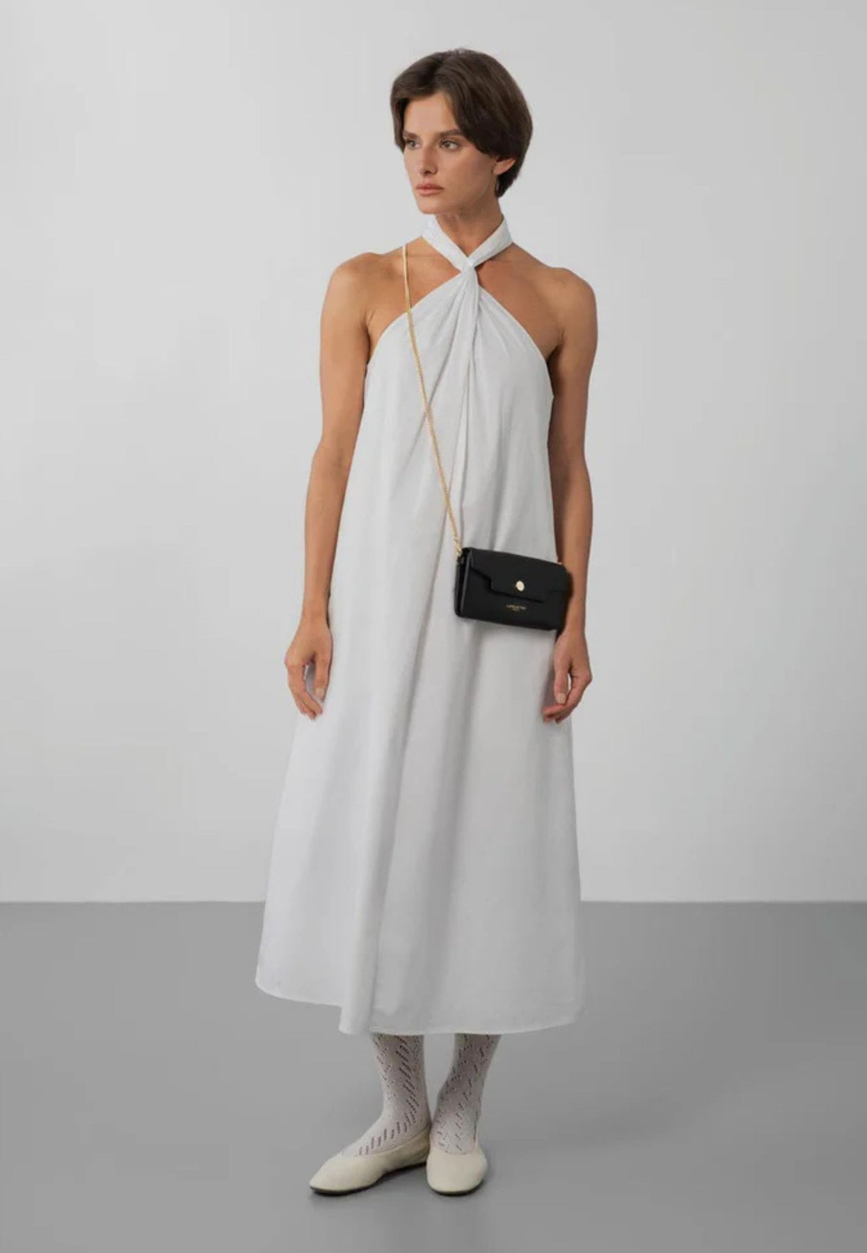 El negro atemporal combina perfectamente con un vestido midi burdeos y zapatos de tacón color piel, un blazer color crema y pantalones pitillo combinados con mocasines dorados, o un mono fluido color camel combinado con sandalias de tacón metalizadas.