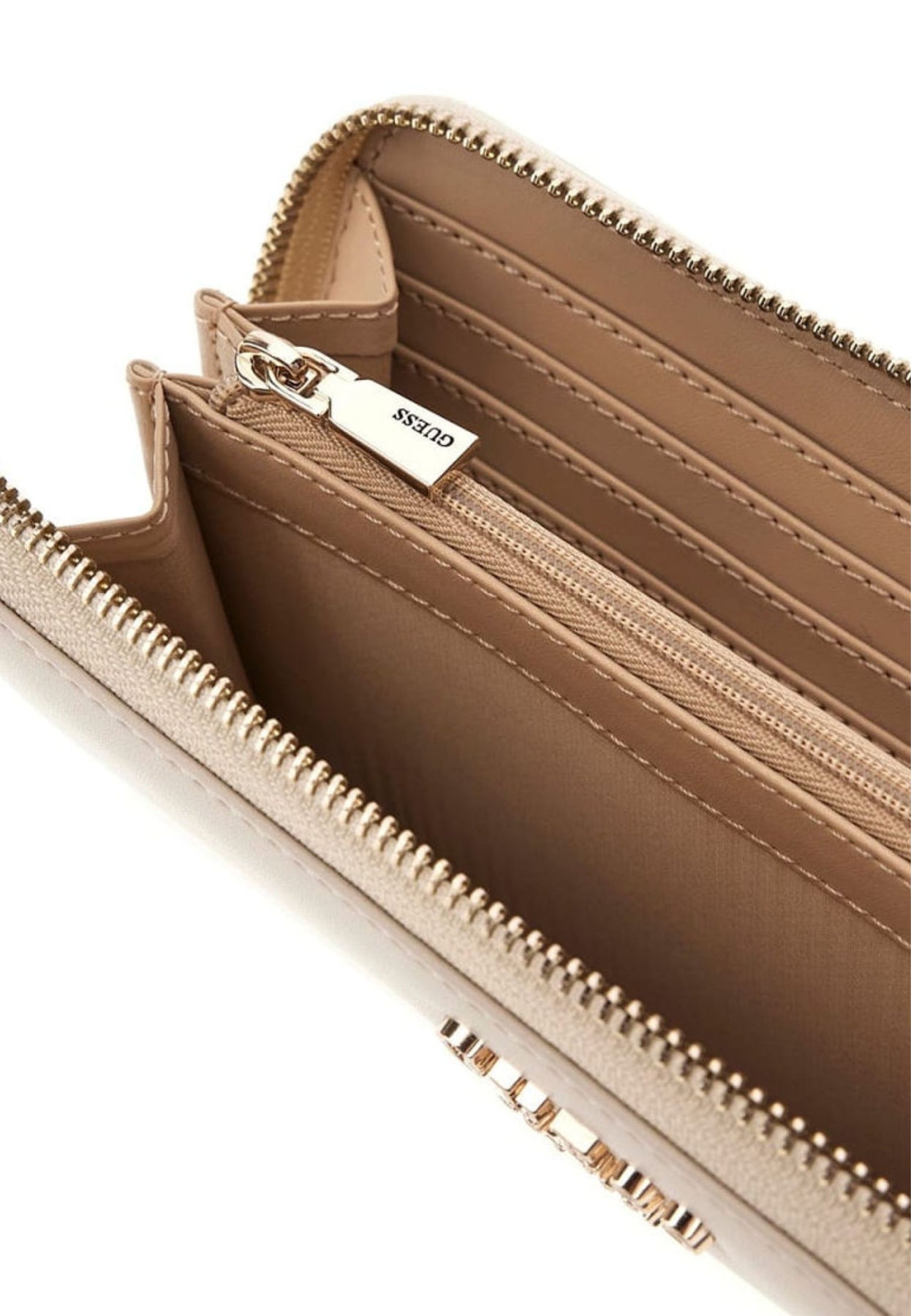 Dëse Guess Portmonni aus der Laurel-Linn mécht d'organisatorescht Alldag zu engem stilvollen Gest. Seng Faarf bone bréngt eng chic Neutralitéit, déi d'Joreszäiten mat natierlecher Eleganz duerchgeet.