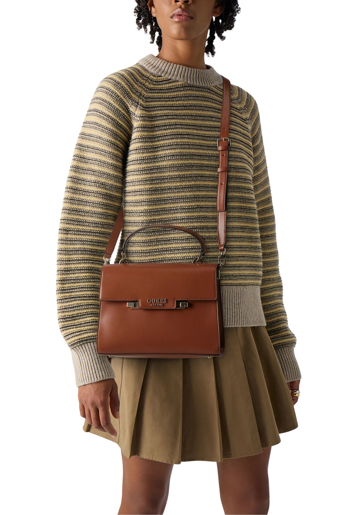 Torba na ramię Guess Eco Mietta Sml Socie doskonale łączy nowoczesny styl z codzienną funkcjonalnością. Jej wyrafinowany odcień koniaku dodaje ciepła Twoim stylizacjom, a bezpieczny zamek błyskawiczny chroni niezbędne rzeczy podczas miejskich podróży.