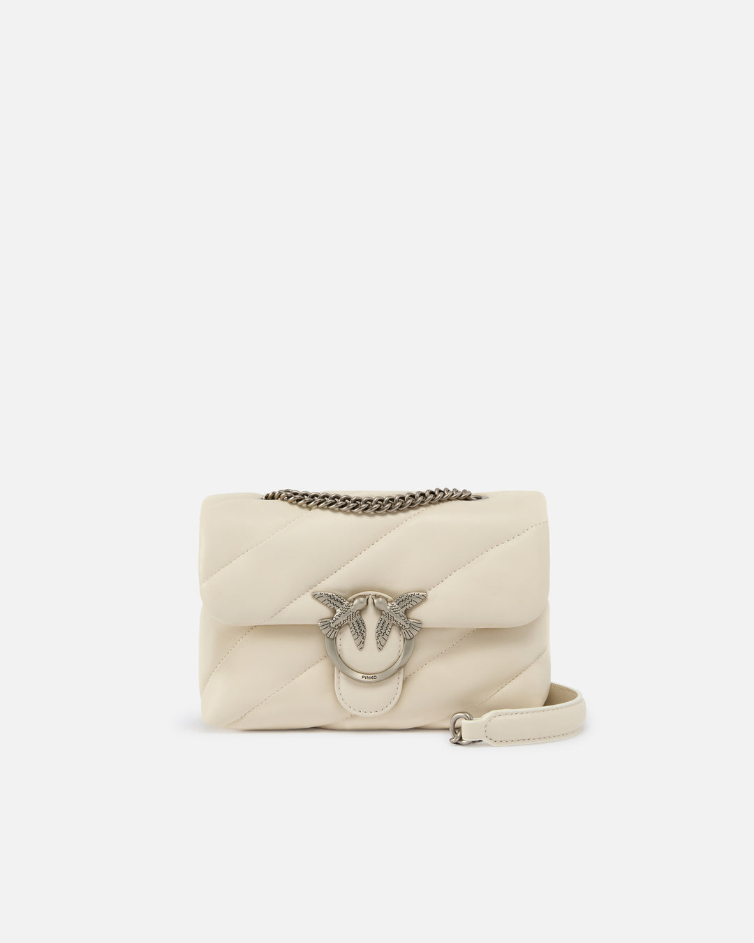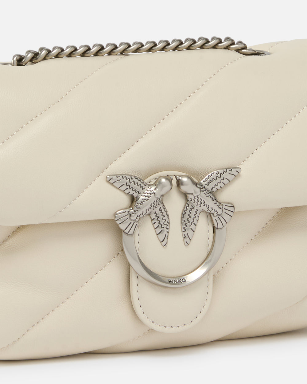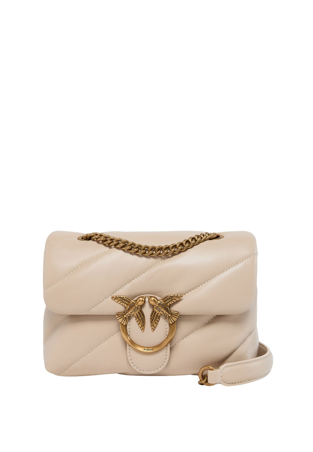 Love Bag cu Ținte: Adevărată emblemă a brandului, Love Bag prezintă celebrii păsări aurii și ținte metalice pe o piele matlasată. Simbol al iubirii și libertății, este disponibilă în mai multe dimensiuni și culori.