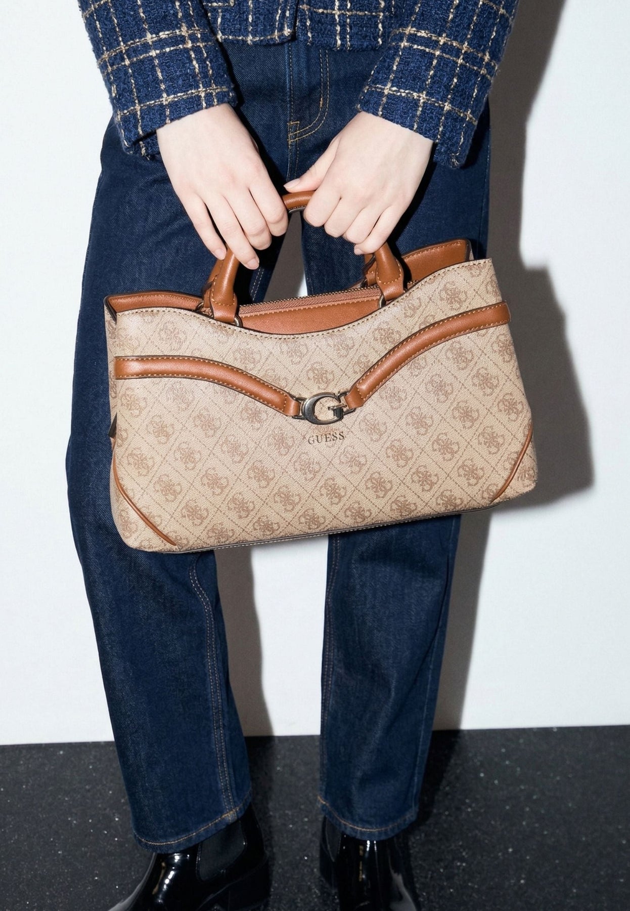 Handbag-linjen från Guess utmärker sig genom sitt samtida tillvägagångssätt för damlädervaror. Denna modell SG799306 kombinerar ett kompakt format och en elegant estetik, perfekt för att följa med under dina aktiva dagar. Dess dragkedja säkrar dina nödvändigheter samtidigt som den ger snabb åtkomst.